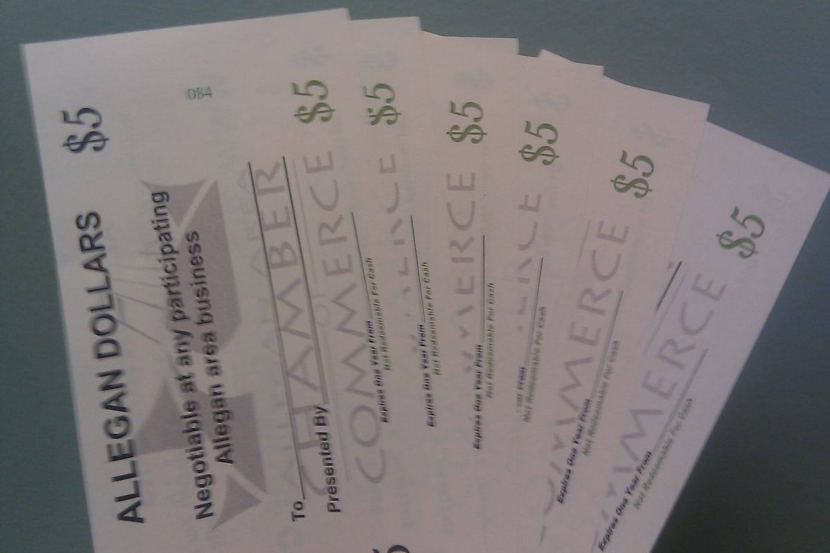 allegan DollarsAllegan Dollars are a great way to increase the power of your gift-giving dollars this holiday season.  Available for purchase at the Allegan Area Chamber of Commerce, and accepted at most retailers and restaurants in the Allegan, Allegan Dollars keep your money in our community.  Last year’s holiday season saw Allegan Dollars purchased by out-of-town grandparents for gifts to their Allegan family members, used as tokens of appreciation to mail-carriers and refuse collectors, and awarded as holiday bonuses and service awards for employees.
