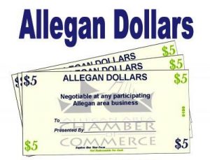 Allegan Dollars are a great way to increase the power of your gift-giving this holiday season.  Available for purchase at the Allegan Area Chamber of Commerce, and accepted at most retailers and restaurants in the Allegan, Allegan Dollars keep your money in our community.  Last year’s holiday season saw Allegan Dollars purchased by out-of-town grandparents for gifts to their Allegan family members, used as tokens of appreciation to mail-carriers and refuse collectors, and awarded as holiday bonuses and service awards for employees.
