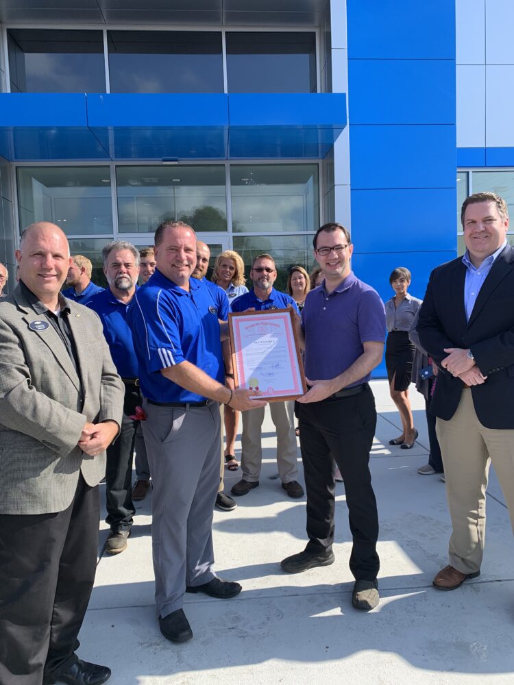Betten Baker Chevrolet Buick GMC celebrated the Grand Opening of their new showroom an Allegan Area Chamber of Commerce Ribbon Cutting Ceremony on Monday, August 19. Josh Przygocki, District and Constituent Relations Director for State Senator Aric Nesbitt, was on hand to present a State of Michigan Tribute signed by Nesbitt, State Representative, Mary Whiteford, and United States Congressman, Fred Upton.
