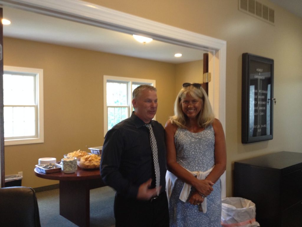 The Brian McDonald Group celebrated their grand opening on Thursday, August 23 with an Allegan Area Chamber of Commerce Ribbon Cutting Ceremony. Brian McDonald purchased Maurer Real Estate, LLC from Sue Maurer earlier this year. The highlight of the event was a McDonald’s heartfelt appreciation for Sue, the business she nurtured, and her impact on this community. McDonald concluded his remarks promising the agency’s continued commitment to the Allegan community, a presentation of flowers to Ms. Maurer, and an offering of prayer – oh, and the assurance that Sue will continue working as part of the team.