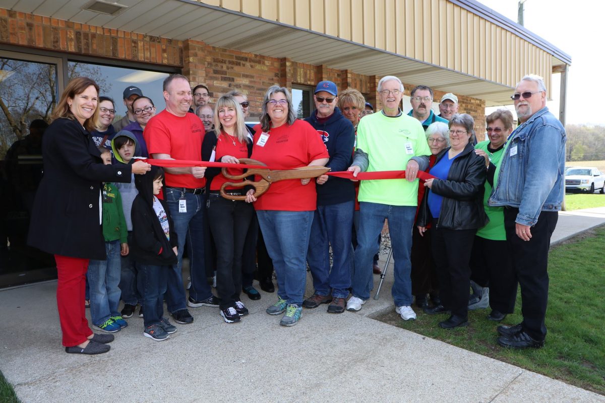 Tim Perrigo, executive director of the Allegan Area Chamber of Commerce, led the ribbon cutting ceremony congratulating HFC for their concern and compassion to people who need food. Mary Whiteford, from the 80th district in the Michigan House of Representatives, presented a plaque signed by herself and the governor stating that “they are an organization so dedicated to improving the lives of our community…”
