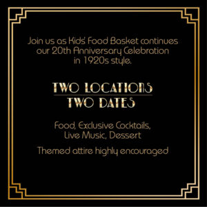 Join us as Kids’ Food Basket continues our 20th Anniversary Celebration in 1920s style.