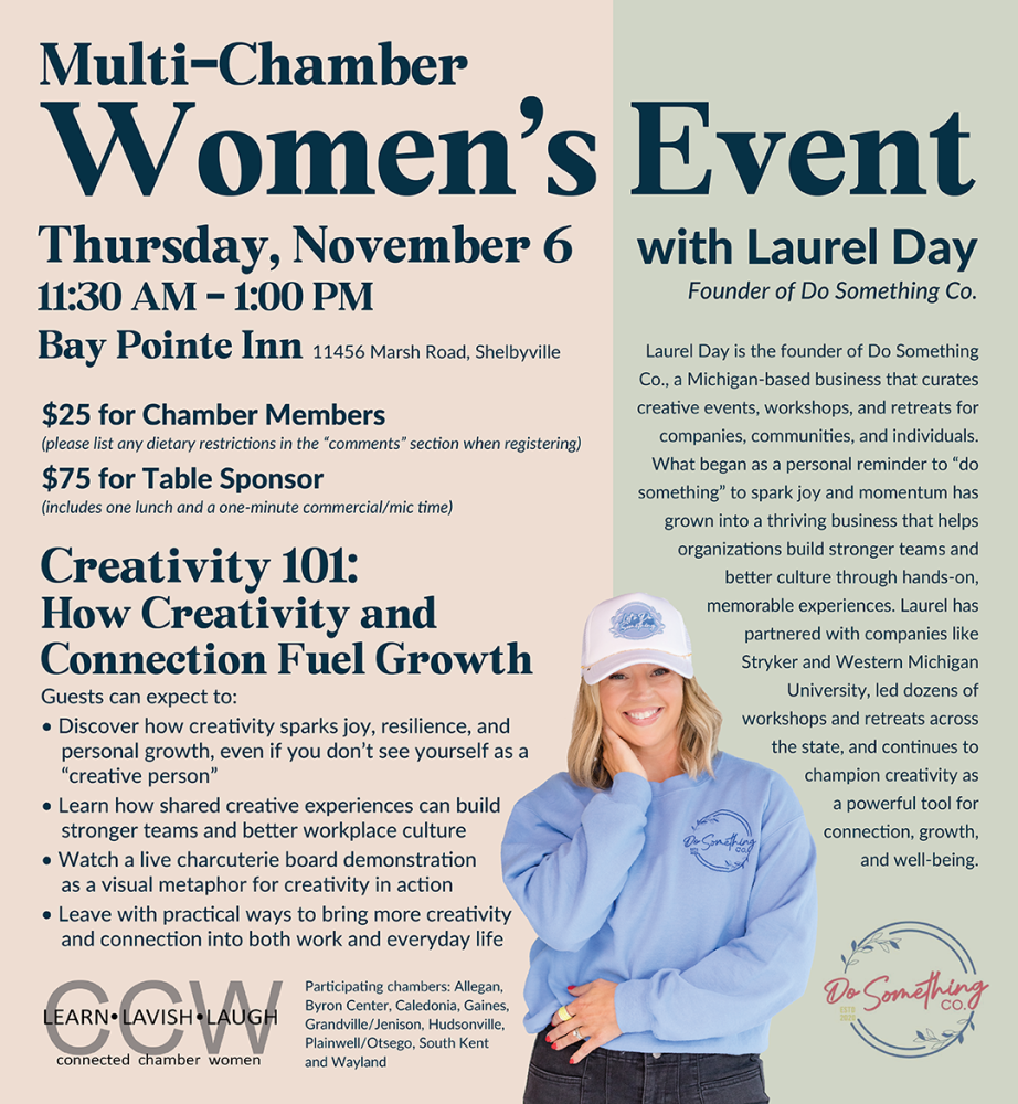The mission of Connected Chamber Women is to create connections between West Michigan Chambers and organizations. Meeting quarterly for women to enhance their business and personal relationships with opportunities to LAUGH – lighten our load, LEARN information to solve business problems and LAVISH ourselves with encouragement in celebrating our successes and each other.