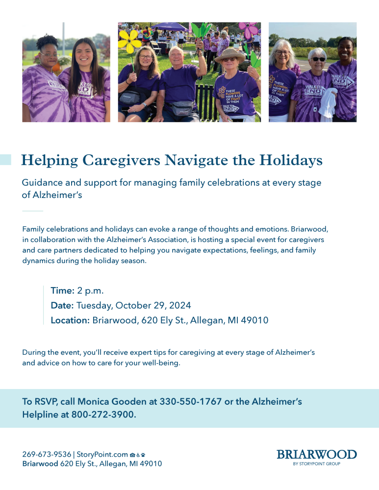 There will be an ice cream social from 1:30-2pm followed by a presentation from The Alzheimer’s Association from 2-3pm at Briarwood. The topic is “Enjoying Family Celebrations”, just in time for the Holidays.