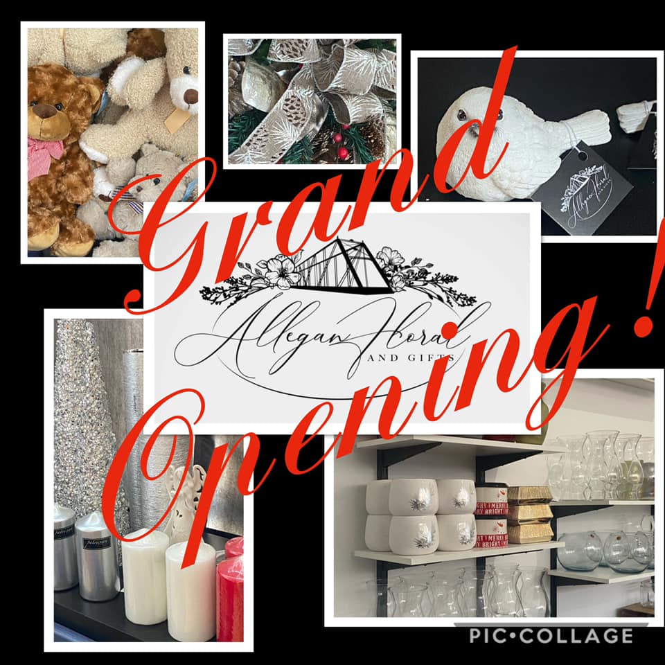 Allegan Floral and Gifts invites you to celebrate their Grand Opening with an Allegan Area Chamber of Commerce Ribbon Cutting Ceremony on Friday December 13 at 4:00 PM. Allegan Floral and Gifts is located in The Shoppes at The Penney’s Block at 118 Locust St., Suite 101. Plan on spending the evening in Downtown Allegan as the celebration occurs just before the Allegan Area Arts Council’s Art Hop.