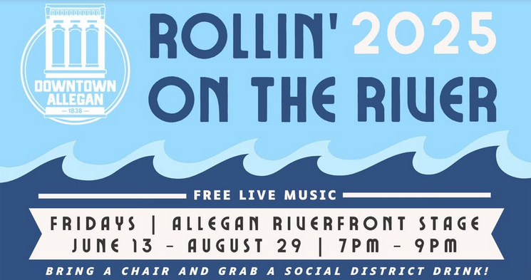 Rollin’ on the River is a free, weekly Friday night concert series on the Allegan Riverfront Stage featuring touring musicians from around Michigan and beyond.