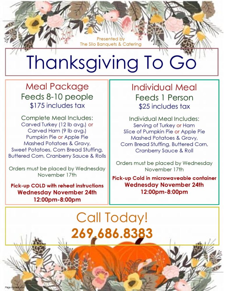 The Silo Banquets & Catering will be offering Complete (feeds 8-10) and Individual Meals for Thanksgiving again this year. There are some changes so please read carefully.