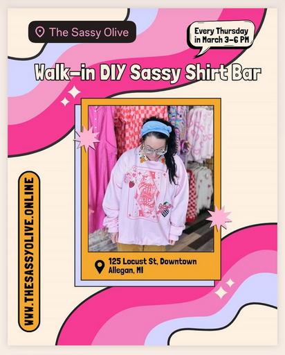 Every Thursday from 3-6pm! Create your very own one-of-a-kind shirt! Tees starting at $25, crewnecks at $50, and hoodies for $65.