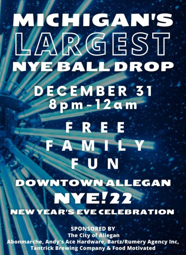 NYE! returns and we still have the LARGEST New Year's Eve ball drop in Michigan! Ring in 2022 with the fourth annual NYE! celebration in Downtown Allegan on Friday, December …