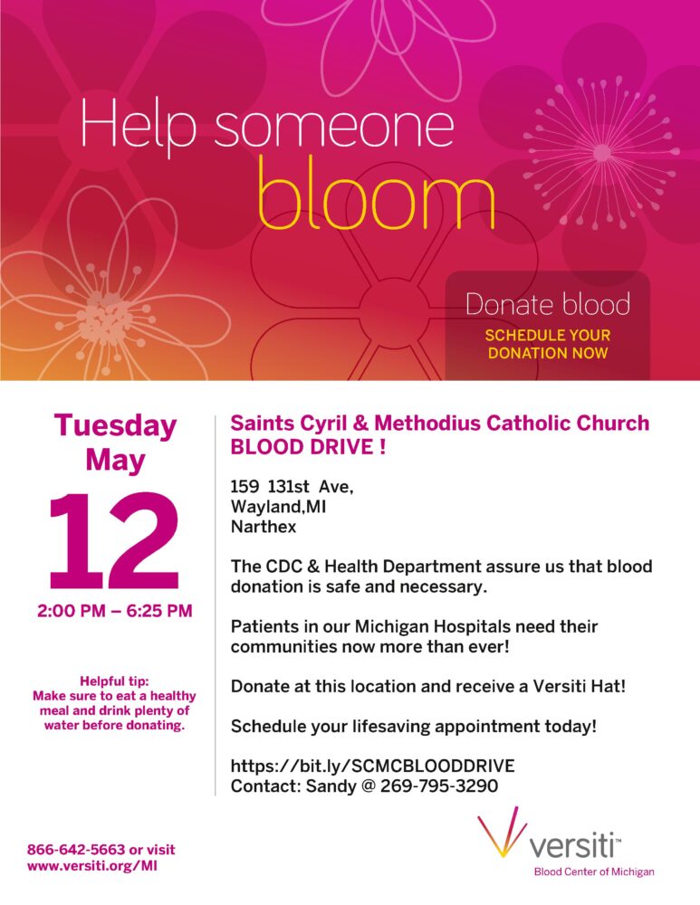 Saints Cyril & Methodius Catholic Church 159 131 St. Ave, Wayland, MI, United StatesSchedule your donation here Versiti COVID-19 Information
