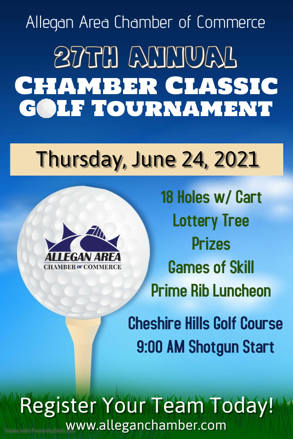 The Allegan Area Chamber of Commerce’s 27th annual golf outing will take place at Cheshire Hills Golf Course on Thursday, June 24, 2021, with a 9:00 AM shotgun start. Prizes …