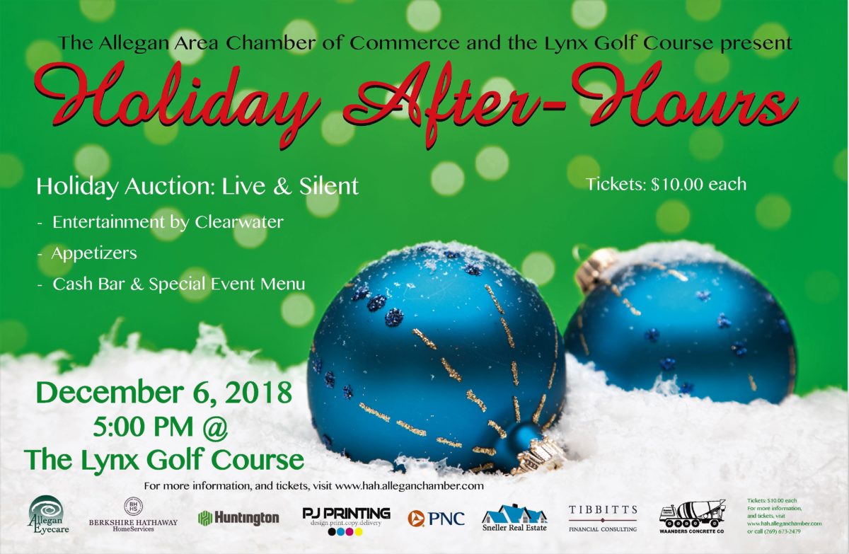 Buy Your TicketsHere! Celebrate the holiday season in your community: Join the Allegan Area Chamber of Commerce and Lynx Golf Course as they present Holiday After-Hours on December 6, 5:00 PM …