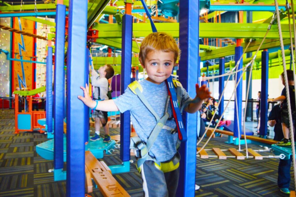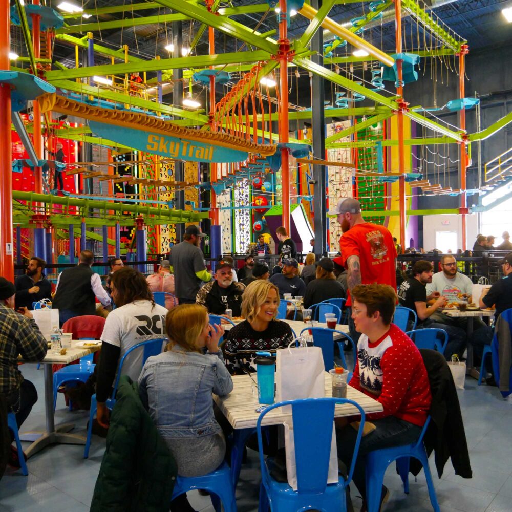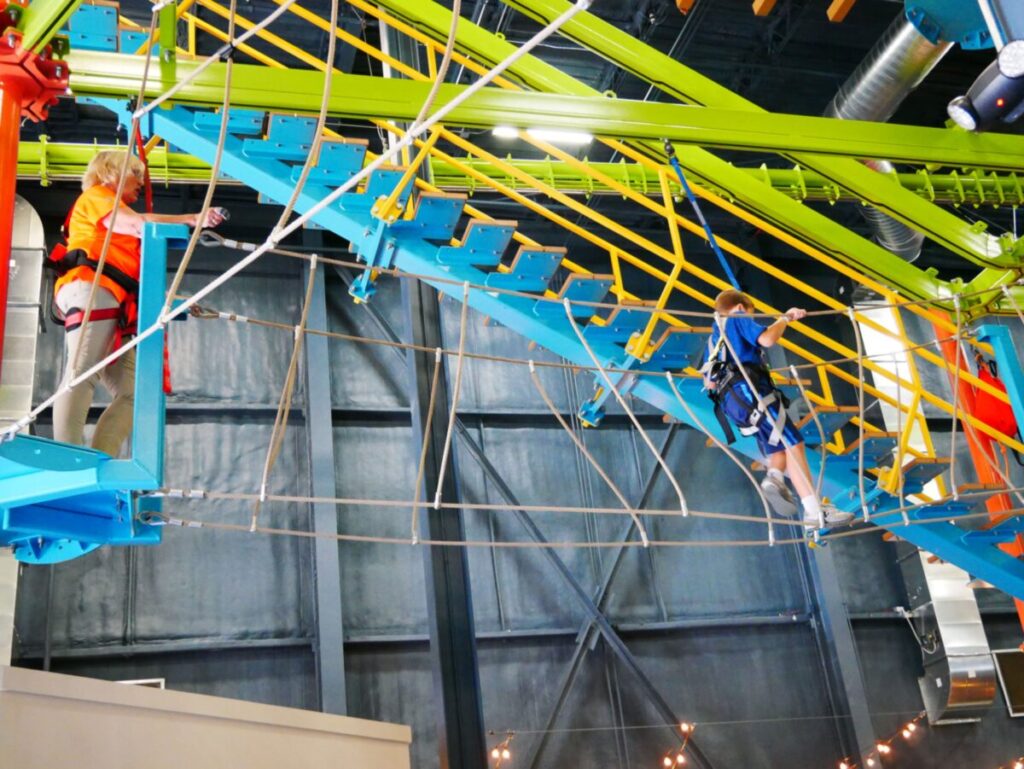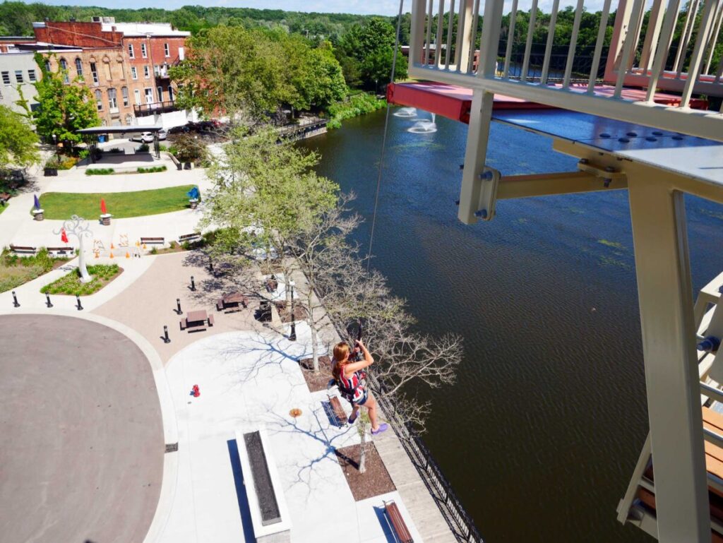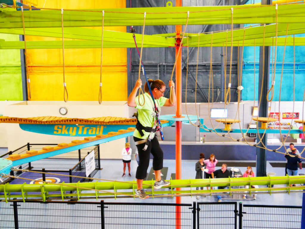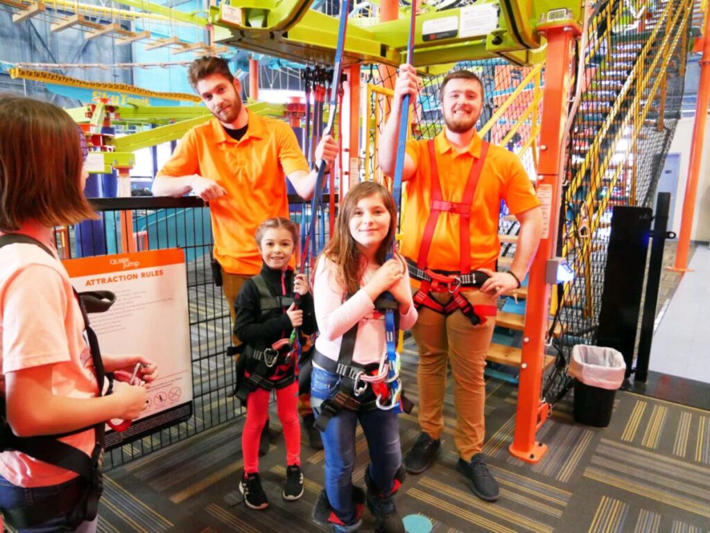 Take fun to new heights when you explore the heart-pumping bi-level Sky Trail® ropes course with Sky Rail™ with zip rails sitting at heights up to 35 feet. Pair the course with other activities such as the QUICKjump free-fall simulation, Vertical Drop Slide, Clip ‘n Climb® walls, and seasonal outdoor zip line spanning the Kalamazoo River.