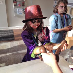 Dragon Valley Reptiles continued to introduce themselves to the Allegan community by bringing a few of their exotic pets to the Allegan Area Chamber of Commerce/City of Allegan Welcome Center for the Downtown Trick-or-Treating event on Halloween evening. If there were any doubts that kids are fearless, they were quickly put to rest as swarms of minions, hobos, superheroes, and princesses waited their turn to pet or hold the snakes and lizards (scary tarantula was off limits or they would have held that too). It was a smashing success and I thank the Parsons – Joshua, Felicia, AJ, and Micah – for hanging out with us and adding to the Halloween fun.