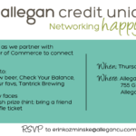This is an exclusive event for Allegan Area Chamber of Commerce Members and the invited guests of the Allegan Credit Union. RSVP to ErinKozminske@allegancu.com